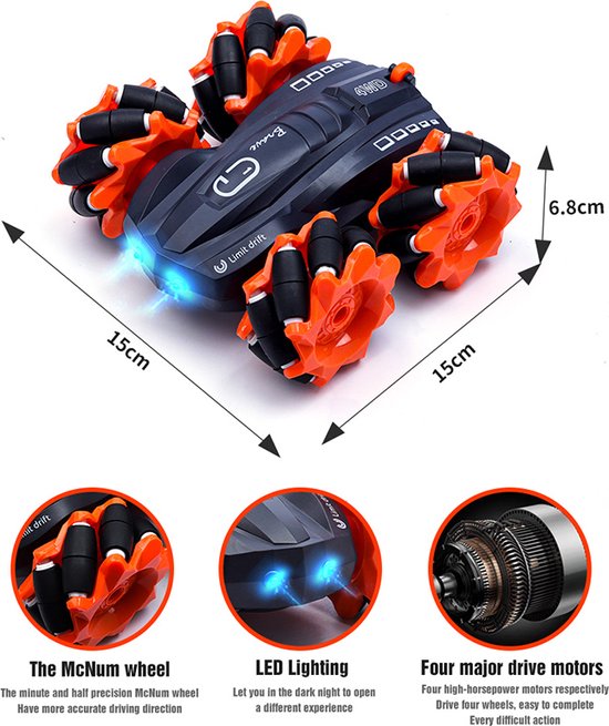 360 ° roterende RC-stuntauto: je kunt niet alleen rennen, vooruit, achteruit, rechts, links draaien op deze elektrische RC-stuntauto, maar ook 360 graden rollen en draaien en rijden met dubbelzijdige flip voor een andere game-ervaring. Dubbelzijdig rijden kan gemakkelijk obstakels passeren, en tegelijkertijd kan deze functie ook plotseling in snelle beweging achteruit rijden, waardoor de speelgoedauto in een oogwenk een dansende auto wordt Vriendelijke bediening: lange afstand en 2,4 GHz anti-jamming. Meerdere sets supersnelle speelgoedauto's met afstandsbediening kunnen samen concurreren, en deze auto's gaan hun eigen weg zonder elkaar te hinderen op ongeveer 40 meter afstand van de afstandsbediening Offroad en krachtig: Uitgerust met 2 krachtige elektromotoren, LED-koplampen en hoogwaardige zachte en anti-collision buigbare rubberen banden, schokabsorptie, sterke grip, antislip, niet bang voor natte en gladde wegen. De op afstand bestuurbare rupsauto is geschikt voor zowel binnen als buiten, zoals stranden, wetlands, graslanden etc. Ingebouwde batterij, eenvoudig op te laden