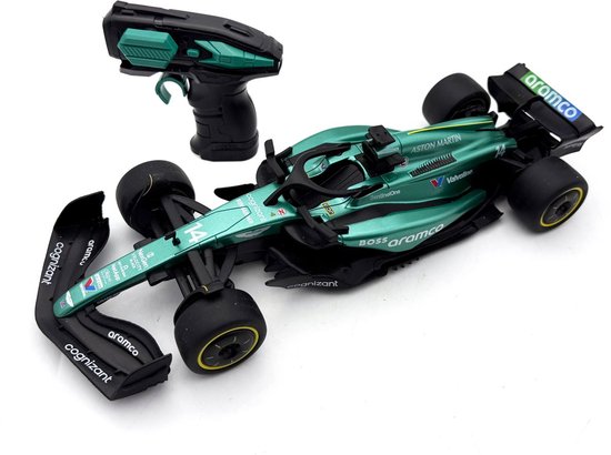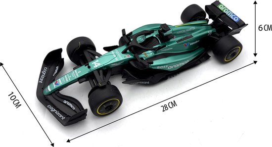 Zet de snelste raceronde neer met deze op afstand bestuurbare Formule 1 Raceauto van Aston Martin met een schaal van 1:20! Deze gedetailleerde RC-wagen brengt de spanning van de Formule 1 direct naar jouw woonkamer of tuin. Met zijn officiële Aston Martin design en stoere uitstraling ziet hij eruit alsof hij zo uit de pitstraat komt gereden. De auto is 28 centimeter lang, 10,4 centimeter breed en 6 centimeter hoog. Dankzij dit compacte formaat is hij wendbaar en makkelijk overal te gebruiken.