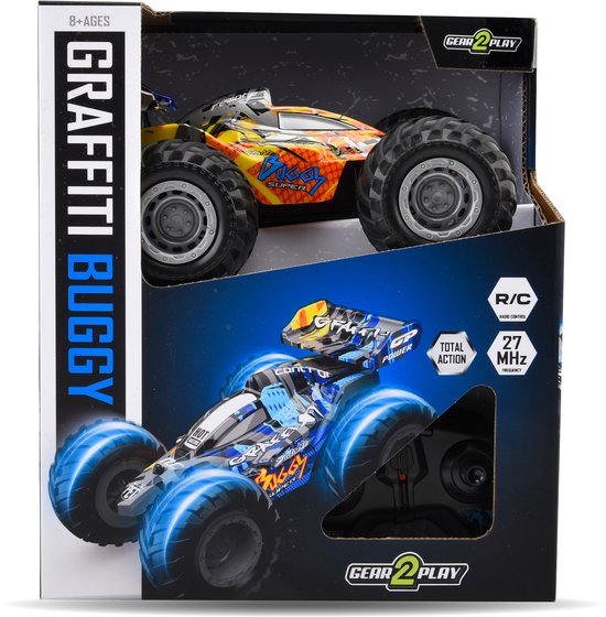 De Gear2Play RC Graffity Buggy staat garant voor actie en avontuur! Deze stoere radiografisch bestuurbare buggy in schaal 1:24 is compact van formaat, maar groots in prestaties. Dankzij het robuuste design en de grote, krachtige wielen trotseert hij moeiteloos verschillende ondergronden.