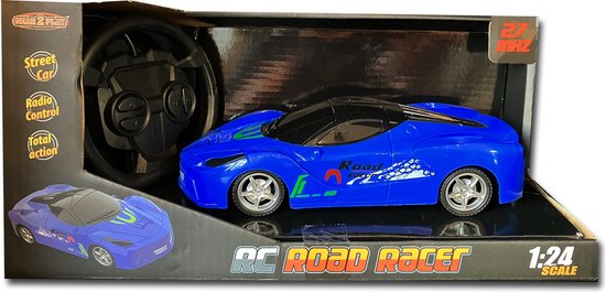 De Gear2Play RC Road Racer met een schaal van 1:24 is een stoere op afstand bestuurbare raceauto. Met deze compacte racer in flitsende kleur kun je zowel binnen als buitenhuis rijden. De controller in de vorm van een stuur zorgt voor een realistische rijervaring! Frequentie: 27 MHz. Batterij informatie: Auto 3 x AAA batterijen (niet meegeleverd) - Controller 2 x AA batterijen (niet meegeleverd). Leeftijdsindicatie: 5 jaar+.