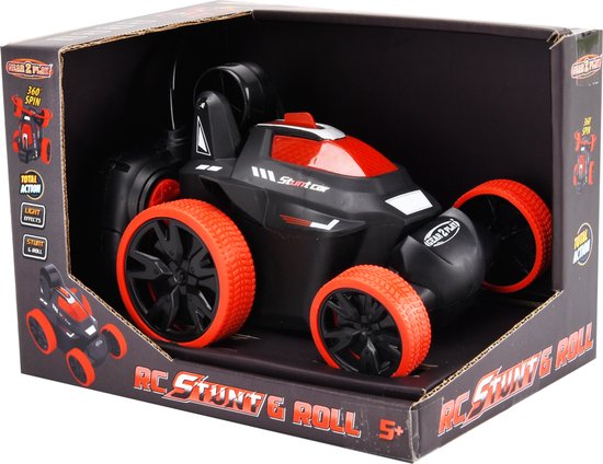 De Gear2Play RC Stunt & Roll is een compacte stuntauto die verschillende spectaculaire stunts kan maken. Met zijn voorbanden maakt deze stunter unieke 360 graden spins. Maak een backflip en de auto rijdt op twee wielen verder! Stuur hem eenvoudig alle kanten op met de controller, total control! Het lichteffect bovenop de RC Stunt & Roll zorgt voor nog meer beleving. Afmeting auto: 12x12x10 cm (lxbxh). Batterij informatie: auto: 3 x AA batterijen (niet meegeleverd) - controller: 2 x AA batterijen (niet meegeleverd). Leeftijdsindicatie: 5 jaar+.