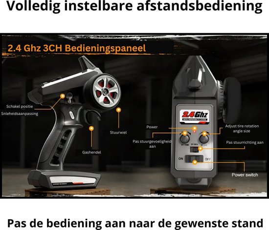 De meegeleverde afstandsbediening zorgt voor nauwkeurige besturing, zodat je de auto moeiteloos kunt manoeuvreren op verschillende terreinen. Ervaar de sensatie van volledige controle terwijl je over obstakels navigeert.