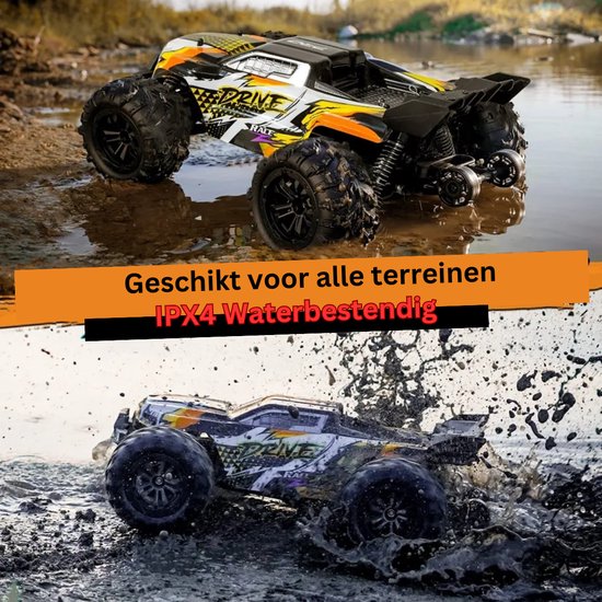 Met een waterdichte constructie hoef je je geen zorgen te maken over modderplassen of regenbuien. Deze RC auto is gebouwd om elk avontuur aan te kunnen, ongeacht het weer.