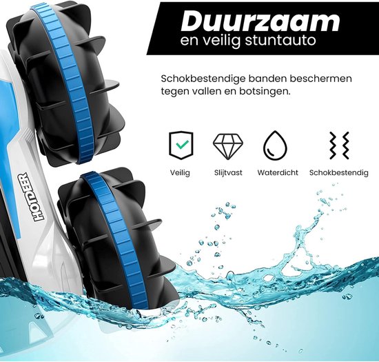 Dankzij de waterdichte behuizing en sterke aandrijving blijft de auto betrouwbaar presteren, ongeacht de ondergrond. Dit maakt het een echte stunt auto voor actief spel.