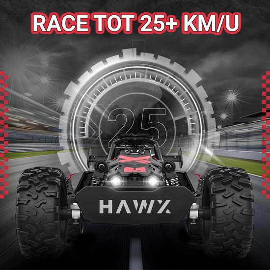 De HAWX R44 levert indrukwekkende versnelling en haalt met gemak snelheden boven de 25 km/u. Perfect voor spannende races en off-road avonturen.