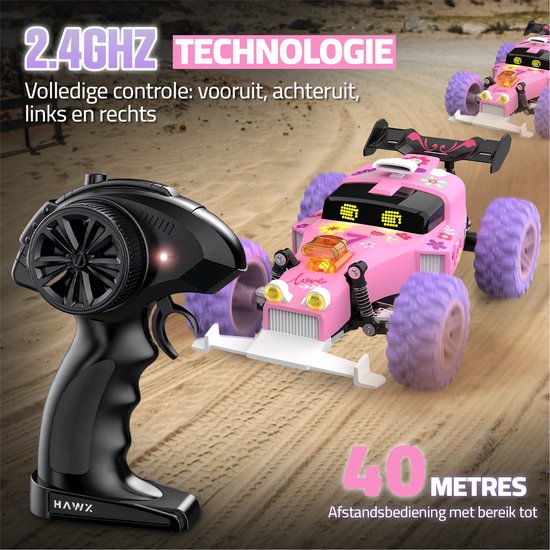 De HAWX R32 bestuurbare auto combineert snelheid, controle en een vrolijk design met schattige details. Perfect voor girls die willen racen in stijl én plezier maken.