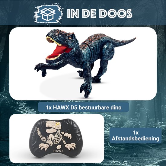 Klaar om een dinosaurus tot leven te brengen in huis? Druk op “In winkelwagen” en bestel nu je HAWX D5 bestuurbare dino!