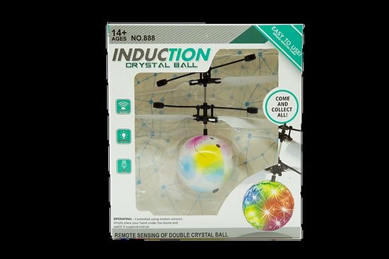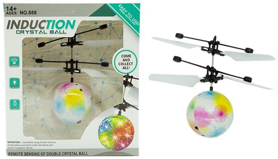 Een Heli ball is een gadget wat ieder kind wil hebben. Het is een balletje met een propellor. De propelor zorgt ervoor dat de bal gaat zweven door de lucht. Je kunt d.m.v. je hand het balletje besturen. Zodra de heli ball voelt dat je hand eronder zit, gaat hij weer omhoog. Ook voelt de heli bal wanneer de grond bijna geraakt wordt, of een ander opject. Zo vliegt de heli ball minuten lang door de woonkamer. Is de batterij leeg? Laad hem op met je telefoon lader. De heli ball werkt op USB. (lader niet meegeleverd, usb kabel wel). Tijdens het vliegen, trakteert de vliegende bal je ook nog eens op een fraaie lichtshow met de ingebouwde LED verlichting.