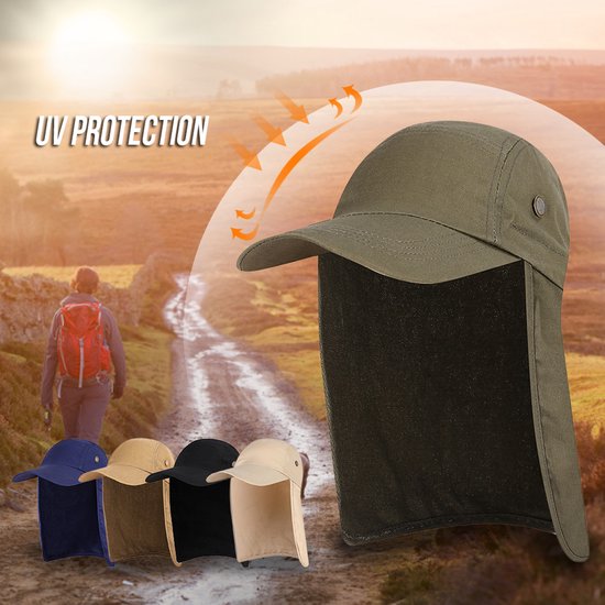 Heren UPF 50+ zonnepet met brede rand, visserszonnepet met nekflap