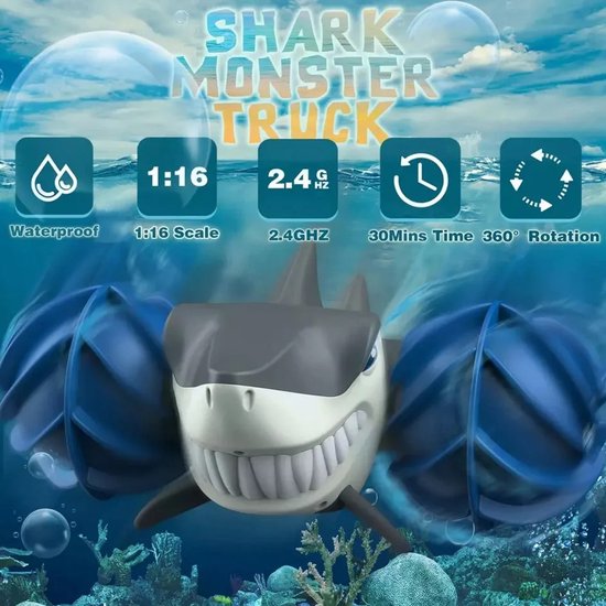 De Huntex RC Haai is geen gewone op afstand bestuurbare auto – dit is een amfibisch stuntvoertuig dat net zo makkelijk over de vloer scheurt als door water, modder of zand! Dankzij het unieke haaienontwerp en de krachtige 2.4 GHz afstandsbediening beleven kinderen vanaf 6 jaar eindeloos speelplezier, zowel binnen als buiten.
