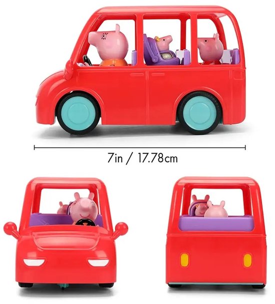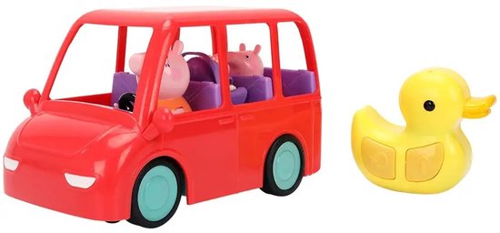 Jada Toys Peppa Pig RC familieauto (17.5 cm) - op afstand bestuurbare speelgoedauto voor kinderen vanaf 3 jaar met vaste figuren van Peppa Wutz, Mama & Baby Evie, incl. afstandsbediening.Peppa Wutz familieauto - met Mama, Peppa & Baby Evie! - Op afstand bestuurbare ´´Family Car R/C´´ met 3 ingebouwde Peppa Wutz figuren en 1-kanaals afstandsbediening (2.4 GHz).- Lengte 17.5 cm.- max.2.5 km/u.- Batterijen vereist (NIET inbegrepen) voor auto en bedieningseenheid: 3x 1.5V-R6 en 2x 1.5V-R03.- Leeftijdsadvies: Peppa Pig speelgoed vanaf 3 jaar.- Officieel gelicentieerd Peppa Wutz fanartikel.De rode auto uit de serie als een RC auto om zelf mee te rijden.Welkom, Evie! Het nieuwe familielid maakt Pepp´s wereld nog kleurrijker - en natuurlijk heeft ze het juiste voertuig nodig.Mama Wutz, Peppa Wutz en baby Evie zijn klaar om te gaan in de felrode familieauto: De vaste speelfiguren blijven altijd veilig in de auto - perfect voor fantasierijke uitstapjes met de Wutz familie! Eenvoudige bediening voor kinderen vanaf 3 jaar.Met de piepende gele eend afstandsbediening kun je meteen aan de slag - met slechts 2 knoppen die zeer eenvoudig te bedienen zijn: vooruit rechtuit of achteruit in een bocht.Dit betekent dat zelfs kleuters de Peppa Pig auto zelfstandig kunnen besturen! De op afstand bestuurbare speelgoedauto rijdt met een kindvriendelijke snelheid van 2.5 km/u en is met 17.5 cm speciaal ontworpen voor kinderen vanaf 3 jaar.Fijne motoriek en behendigheid worden gestimuleerd tijdens het rijden - en de fantasie slaat meteen aan! Jada Toys - Hollywood helden als speelgoed en verzamelobjecten.Batman, Fast & Furious, Harry Potter, Marvel, Minecraft of Transformers: Met Jada Toys haal je bekende Hollywood sterren in je woonkamer als getrouwe replic´s van filmfiguren en auto´s.Als toonaangevende fabrikant van Hollywood actiefiguren en modelauto´s creëren we al meer dan 20 jaar hoogwaardige, gedetailleerde verzamelobjecten voor kinderen en volwassenen.