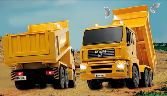 Dit is de Jamara bestuurbare Kiepwagen MAN met een schaal van 1:20.