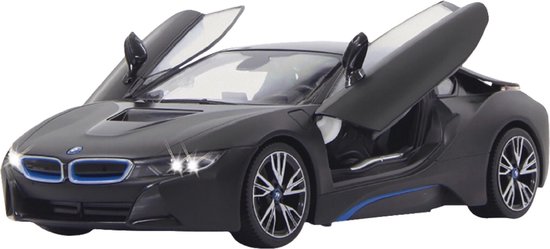 Dit is de radiografisch bestuurbare Jamara BMW I8 1:14 met deuren die open kunnen in de kleur zwart.