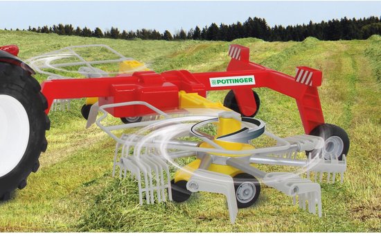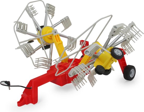De Pöttinger windrower op een schaal van 1:16 heeft radiografisch bestuurbare, opvouwbare verlengarmen. De tanden van de Pöttinger windrower draaien tijdens het rijden, wat een realistisch beeld oplevert. Het is compatibel met alle RC-tractoren met een licentie van 1:16. Zoals onder andere de Massey Ferguson of de Fendt Vario. Ook bij ons apart te koop. Leeftijd categorie vanaf 6 jaar.