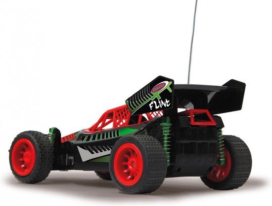 Bestuur nu jouw eigen supersnelle Flint Buggy. Deze buggy is gemaakt in mooie kleuren en heeft extra stevige veringen zodat je hem ook buiten kunt gebruiken. Met de afstandsbediening bepaal jij welke kant de auto op gaat en met welke snelheid. De afstandsbediening werkt op twee AA-batterijen en de auto rijdt op vier AA-batterijen (beide niet inbegrepen).