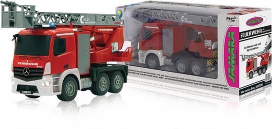 Beleef spannende reddingsmissies gewoon thuis met de 1:20 Jamara 404960 RC Ladder Brandweerwagen Mercedes-Benz Antos met Spuitfunctie - 2,4GHz! brengt deze officiële licentie-uitvoering van Jamara nu naar je toe. Perfect voor jonge brandweerliefhebbers die hun fantasie willen laten uitkomen en spectaculaire reddingsoperaties willen naspelen.
