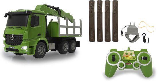 Breng het bosbouwavontuur tot leven met de indrukwekkende 1:20 Jamara RC Boomstam Truck Mercedes-Benz Arcos! Deze officieel gelicentieerde houttransportwagen is uitgerust met een radiografisch bestuurbare kraan én een houtgrijper, zodat je de meegeleverde boomstammen moeiteloos op- en aflaadt, net als een echte professional. Dankzij het robuuste ontwerp, realistische details en tal van geluid- en lichteffecten ervaar je elke transportmissie als een spannende belevenis.