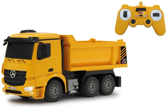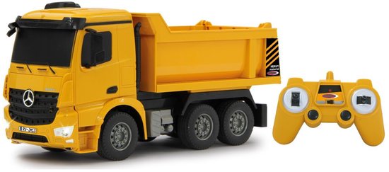 Klaar voor serieuze bouwpret? Met de 1:26 Jamara 405108 RC Vrachtwagen Mercedes-Benz Arocs Kiepwagen - Geel - 2,4GHz bouw je jouw eigen speelplaats! brengt deze officieel gelicentieerde Mercedes-Benz Arocs nu naar jouw woonkamer of tuin. Een absolute must-have voor kleine bouwmeesters die houden van realistisch en stoer speelplezier.