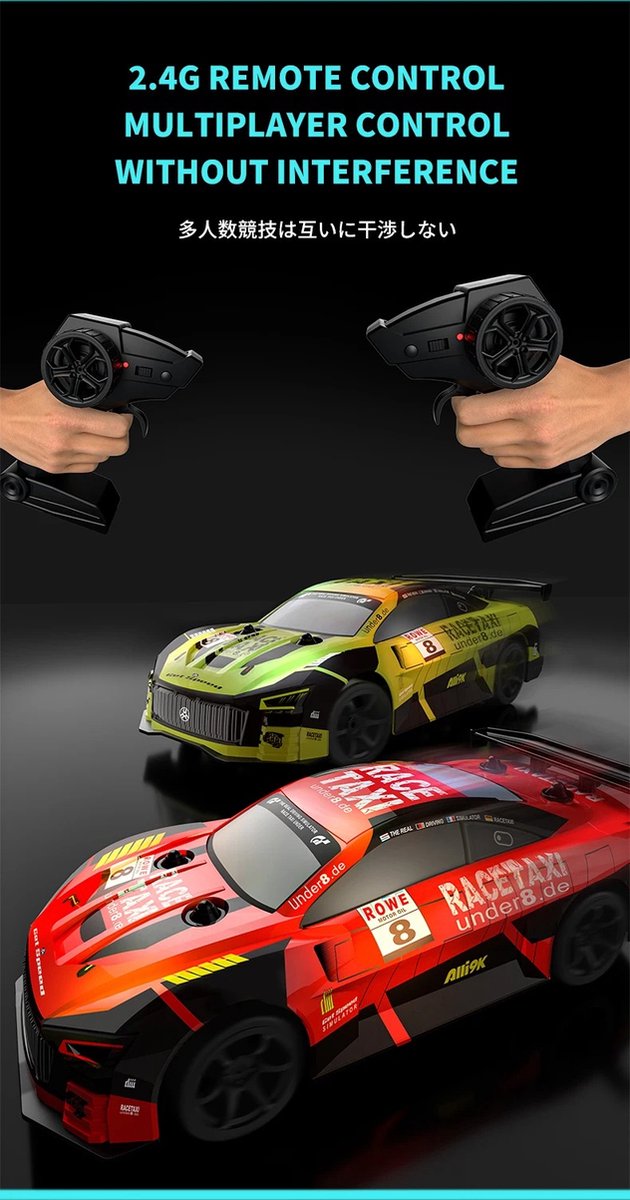De RC Drift Auto is een indrukwekkend en krachtig model dat perfect is voor liefhebbers van snelheid en driften. Met zijn coole ontwerp, sterke motor en duurzame constructie biedt deze 1/18 schaal auto een opwindende race-ervaring, zowel binnen als buiten.