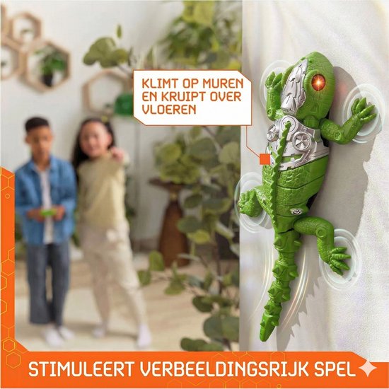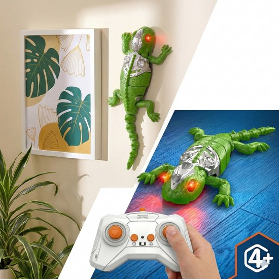 Zwaartekracht tartende actie op muren en plafondsDe CLIMBKO maakt gebruik van geavanceerde vacuümtechnologie waardoor hij moeiteloos tegen muren en andere gladde oppervlakken opklimt. Dankzij de 360 graden stuntactie draait de hagedis razendsnel om zijn as, wat zorgt voor dynamische trucs die zowel jong als oud zullen verbazen.