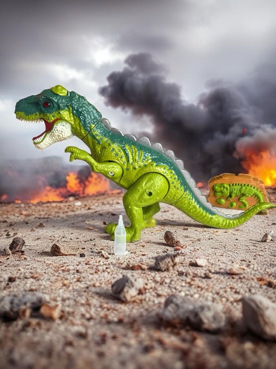 Met de RC dinosaurus creƫer je een unieke sfeer in huis. De combinatie van geluid, licht en rook maakt het spelen met deze T-Rex tot een onvergetelijke ervaring. Of je nu een feestje organiseert of gewoon een leuke middag wilt hebben, deze dinosaurus zorgt voor veel plezier en interactie. Laat de kinderen hun fantasie de vrije loop laten en speel samen met deze indrukwekkende creatie.Gebruik en onderhoud