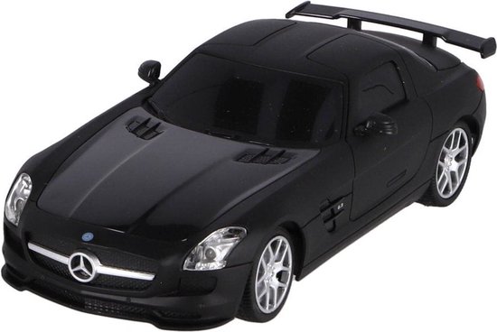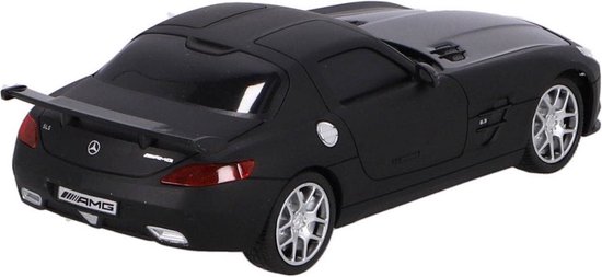 Race het huis rond met deze supergave zwarte Mercedes-Benz SLS AMG GT Final Edition! De auto met werkende koplampen heeft een afstandsbediening waarmee je met een afstand van 10 meter de auto kan besturen. De radiografisch bestuurbare auto kan vooruit, achteruit, links en rechts rijden. De auto is op een schaal van 1:24 en heeft alle details van het origineel zoals zijn matte lak en hoogglans zwart gespoten accenten. De auto heeft rubberen banden en je kunt er zowel binnen als buiten mee rijden. De auto werkt op 2x AA-batterijen, deze zijn niet meegeleverd.