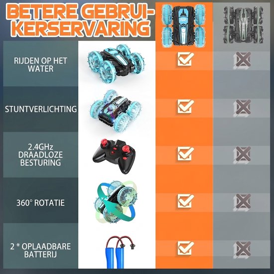Lange Speelduur: Met twee meegeleverde batterijen van 1200mAh kunt u tot wel 60 minuten per batterij genieten van ononderbroken rij- en vaarplezier.