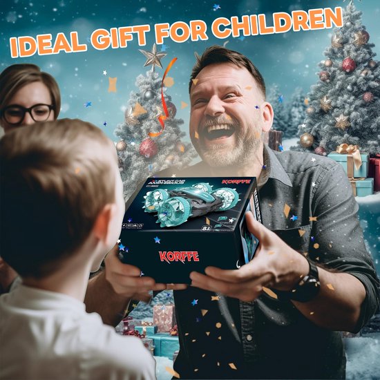 Groter dan veel vergelijkbare modellen – met zijn robuuste formaat van 15 x 15 x 7 cm steekt deze RC-auto echt boven de rest uit. Met een snelheid tot 12 km/u, 360° spins, 180° flips, staat hij garant voor spannende stunts en non-stop actie. Elke rit wordt een avontuur!