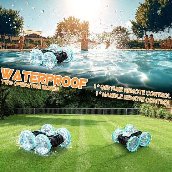 Zand, gras of zelfs water? Deze robuuste bestuurbare auto trotseert het allemaal moeiteloos. Dankzij zijn stevige, waterdichte constructie én twee verwisselbare wielopties is deze afstandsbestuurbare Auto perfect voor elk terrein. Zo geef je je kind de ultieme speelervaring, zonder frustraties of limieten – lees snel verder!