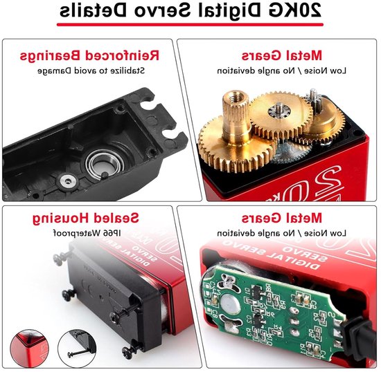Ontdek de krachtige 20kg digitale servo motoren, perfect voor al uw RC voertuigen, robotica projecten en Arduino toepassingen. Deze servo motoren zijn ontworpen om optimale prestaties te leveren, met een indrukwekkend koppel van 20 kg bij 7.4 V, waardoor ze ideaal zijn voor zelfs de meest veeleisende toepassingen.