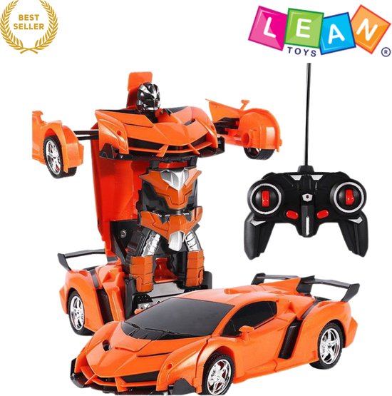 De LEAN Toys Auto Robot Transformer combineert de spanning van racen met de magie van robots. Met één druk op de knop verandert de stoere oranje sportauto in een indrukwekkende robot – net als in bekende films en series. Dankzij de eenvoudige afstandsbediening kan het voertuig in alle richtingen bewegen en spectaculaire stunts uitvoeren. De ingebouwde LED-verlichting en geluidseffecten maken het spelen nog realistischer en spannender. Perfect voor kinderen vanaf 6 jaar die houden van techniek, snelheid en actie!