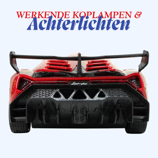 Deze officieel gelicentieerde modelauto in 1:24 schaal is een schitterende replica van de iconische Lamborghini Veneno – een droomauto voor jong en oud. Met zijn sportieve rode design, aerodynamische lijnen en realistische afwerking is dit model een echte blikvanger, zowel tijdens het rijden als in de speelgoedcollectie.