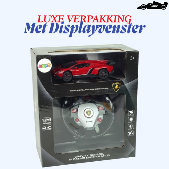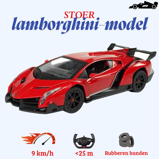 LEANTOYS Lamborghini Veneno RC Auto Rood – Bestuurbare Auto - Afstandsbestuurbare Sportwagen 1:24 met 2.4G Stuurwielcontroller, Geluid & Lichten – Realistische Mini Auto voor Kinderen, Jongens & Meisjes 3+ Met Ebook