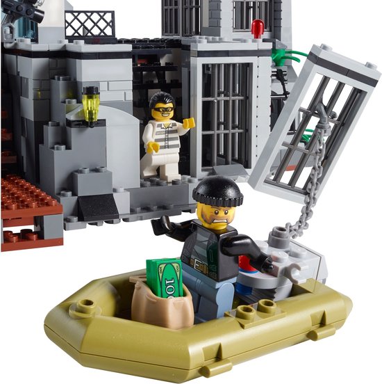 Help de politieagenten de boeven op te sluiten op het LEGO® Gevangeniseiland! Hou de boeven die op de binnenplaats trainen goed in d e gaten en kijk in het gebouw of er gevangenen plannen aan het smeden zijn. Wees op je hoede! De boeven hebben ontdekt dat ze via een rioolafvoer naar hun ontsnappingsboot kunnen geraken! Spring in de helikopter en zorg dat de boeven niet ontsnappen in hun heteluchtballon. Ze doen echt alles om te kunnen ontsnappen!