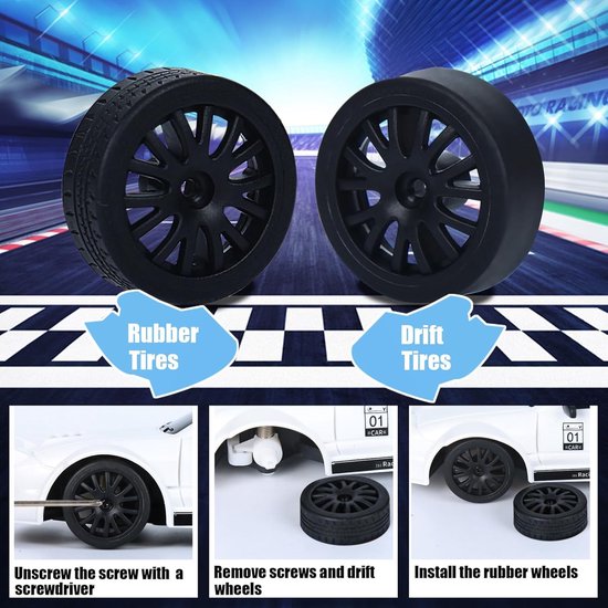 Deze op afstand bestuurbare auto is uitgerust met vierwielaandrijving, wat zorgt voor superieure tractie en stabiliteit tijdens het driften. Of je nu rechtdoor racet of uitdagende driftmanoeuvres uitvoert, de 4WD-mogelijkheden bieden de kracht en controle die je nodig hebt voor al je race-avonturen.