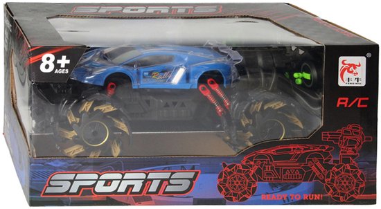 Op afstand bestuurbare terreinwagen met monsterwielen. Afmetingen: ca. 32 x 20 centimeter. Exclusief 2x AA-batterij voor de controller. Geschikt vanaf 8 jaar.
