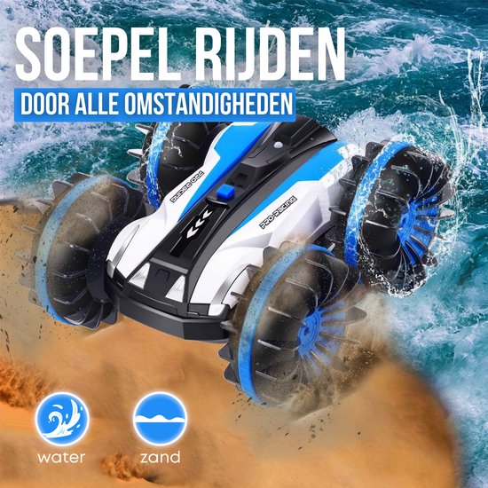 Binnen of buiten de boel onveilig maken? Het kan allebei! Dankzij de stevige rubberen terreinbanden met functionele vering is de RC auto geschikt voor zowel binnen als buiten. De auto is daarnaast water- en stofdicht en dus geschikt voor de meest gekke parcours!