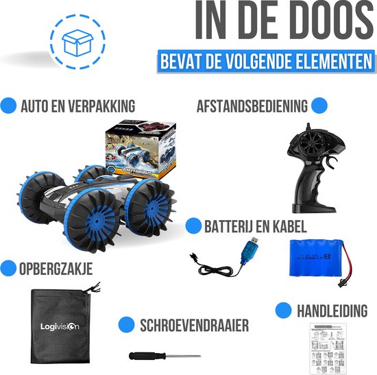 Ben jij opzoek naar een stunt auto om prachtige beelden mee te schieten en uren lang plezier mee te beleven? De bestuurbare auto is aan te sturen door middel van de meegeleverde afstandsbediening en of je smartphone via de app. De RC auto is daarnaast uitgerust met vierwielaandrijving waardoor de auto de meest gekke parcours aan kan zonder enige moeite!