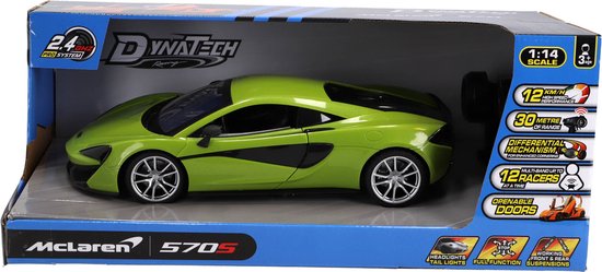 De radiografisch bestuurbare McLaren auto in een schaal van 1:14 is een opvallende verschijning in neon groen. Perfect voor liefhebbers van snelheid en design, combineert deze auto functionaliteit met oogstrelend ontwerp voor uren speelplezier.