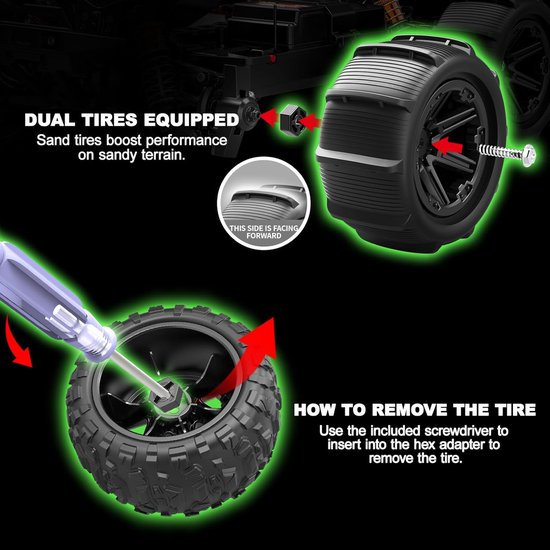 Dubbele Batterijen voor Maximaal Plezier: Geen korte sessies meer. Wij leveren standaard twee oplaadbare 7.4V 1300mAh lithiumbatterijen mee. Samen zijn deze goed voor maar liefst 40 minuten puur rijplezier. Het slimme modulaire ontwerp maakt het wisselen van de accu's kinderspel.
