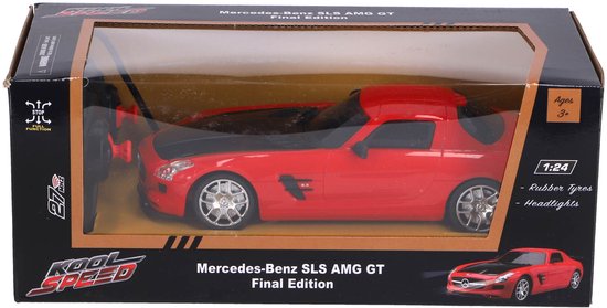 De radiografisch bestuurbare Mercedes-Benz-auto in schaal 1:24 is een getrouw model van de SLS AMG GT Final Edition in een opvallende rode kleur. Deze auto is ideaal voor liefhebbers van verzamelmodellen en radiografisch bestuurbare voertuigen.