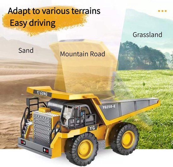 9-kanaals bediening – sturen, rijden, kiepen, lichten aan… alles wat een echte dump truck ook kan