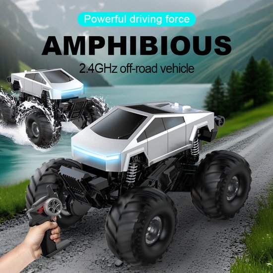 De RC auto met zijn rubberen wielen kan hij makkelijk overal rijden. Bestuurbaar met de afstandbediening of de hand controller. Je kunt er leuke trucjes mee doen. Denk aan tegen een muur aan rijden en omhoog en omdraaien.