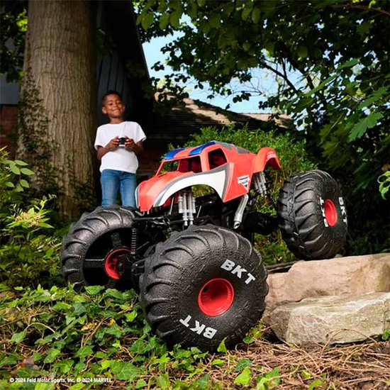 Beleef epische Monster Jam-actie met de Marvel Spider-Man RC-monstertruck. Met een lengte van meer dan 61 cm is deze reus op een schaal van 1:6 met Spider-Man-thema en het iconische rood en blauw, klaar voor denderende prestaties. De enorme banden en de geavanceerde ophanging zijn ontworpen om te navigeren en te overwinnen en gemaakt voor grote stunts en meedogenloze Monster Jam-spanning. In de handen van jonge coureurs is deze op afstand bestuurbare truck niet alleen maar speelgoed, maar ook de toegangspoort tot avontuur waarin de pure kracht van Monster Jam wordt gecombineerd met de heldhaftige geest van Spider-Man. De intuïtieve afstandsbediening geeft kinderen de controle over de actie en stuurt hun Spider-Man-truck op off-road avonturen en torenhoge sprongen - er is geen web voor nodig. Deze op afstand bestuurbare truck is stevig gebouwd voor non-stop spelen en ontworpen voor de Spider-Man-liefhebber. De truck is speciaal voor alle dappere fans die klaar staan om elke schurkenstreek in de achtertuin aan te pakken. Dit is een geweldig alternatief voor een op afstand bestuurbare auto, vliegtuig, boot, helikopter en andere op afstand bestuurbare trucks. Hij creëert een web van spanning en inspireert kinderen om hun eigen verhalen over Monster Jam-helden te verzinnen. Dus, start de motor, kruip achter het stuur en rijd de Mega Marvel Spider-Man RC Monster Jam-truck naar een wereld waar alleen de meest gewaagde stunts worden verwacht.