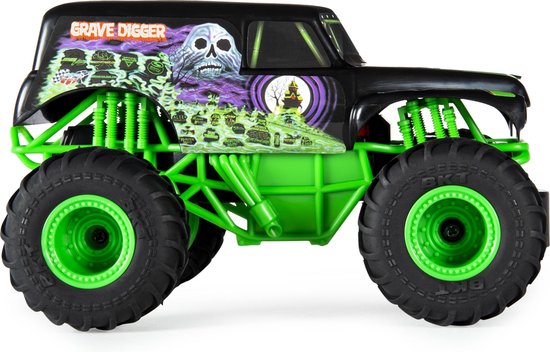 Met deze Grave Digger is het net alsof je in de echte truck rijdt! Voer spannende stunts uit, zoals de big air, donuts, cyclonen en nog veel meer! Je hebt de Monster Jam acties nog nooit zo dichtbij gezien als bij deze officiële, gloednieuwe Monster Jam Grave Digger met een schaal van 1:24!