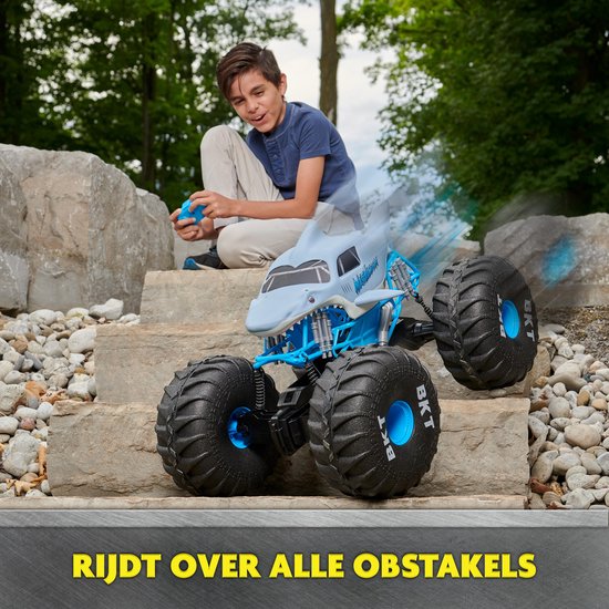 Overwin elk obstakel met het grootste Megalodon RC-voertuig, de MEGA Megalodon! Dit krachtige voertuig met afstandsbediening voor op elk terrein is meer dan 60 cm lang en geeft jou de controle over epische Monster Jam-actie! De extra grote banden en het lichtgewicht ontwerp van de Mega Megalodon helpen je om overal overheen te rollen en door te kunnen gaan! Met een op maat gemaakt rubberen loopvlak voor superieure tractiecontrole en megagrote schokken en vering biedt deze USB-oplaadbare RC-monstertruck op schaal 1:6 onstuitbare prestaties op en naast de weg. De lichtgewicht constructie maakt hem makkelijk te pakken om je wereld in een Monster Jam-arena te veranderen! Gebruik de dubbele joystickcontroller met 2,4 GHz-frequentie om de Mega Megalodon Digger RC te bedienen tot op 80 meter afstand. De monstertruck is een volledig functionele RC: rijd vooruit of achteruit en stuur naar links of rechts! Met een gedetailleerde carrosserie, authentieke BKT-banden en look-a-like chassis lijkt het alsof je deze replica Megalodon in het echt bestuurt! Combineer met ons andere authentieke speelgoed met monstertruckthema (elk afzonderlijk verkrijgbaar), inclusief voertuigen met afstandsbediening, gegoten True Metal-trucks en speelsets. Je bent nog nooit zo dicht bij de actie geweest als met Monster Jam! Monster Jam speelgoed voor monstertrucks is het perfecte cadeau voor kinderen vanaf 4 jaar. Overwin elk obstakel en ervaar de ultieme prestaties met de Monster Jam Mega Megalodon RC!