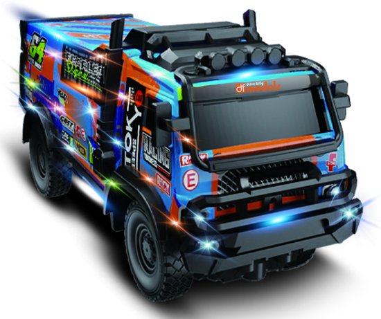 DF Models 3139 Mountain Truck Rally Van 1:18 Ready to Run (RTR) DF Models 2025.De DF Models Mountain Truck Rally Van op schaal 1:18 is het perfecte voertuig voor spannende races en avontuurlijk rijplezier. Deze wendbare racetruck in Dakar-design wordt geleverd als RTR (Ready To Run), zodat u meteen aan de slag kunt. Dankzij de oplaadbare batterij hoeft u niet voortdurend nieuwe batterijen te kopen, wat deze truck bijzonder kostenefficiƫnt maakt. De LED-verlichting laat de truck ook 's nachts schitteren en zorgt voor een adembenemende rijervaring. Ideaal voor jonge beginners vanaf 6 jaar! Een oplaadbare aandrijfbatterij en een praktische USB-oplaadkabel zijn al bij de levering inbegrepen. Gewoon uitpakken, de batterijen (niet meegeleverd) in de zender plaatsen en het rijplezier kan beginnen! Met deze truck beleef je onvergetelijke racemomenten en heb je veel plezier.Leveringsomvang:RC Truck Ready to Run (RTR)2,4 GHz afstandsbedieningLi-aandrijfbatterij - 3,7 Volt - 300 mAhUSB-oplaadkabelHandleidingTechnische gegevens:Schaal: 1:18Aandrijving: 2WD geborsteldLengte: 220 mmBreedte: 85 mmHoogte: 110 mmWielbasis: 125 mmBanden: 40x13 mmGewicht: ca. 250 gLeeftijd: 6+Benodigde accessoires (niet meegeleverd):2x AA-batterijenUSB-voedingsadapter