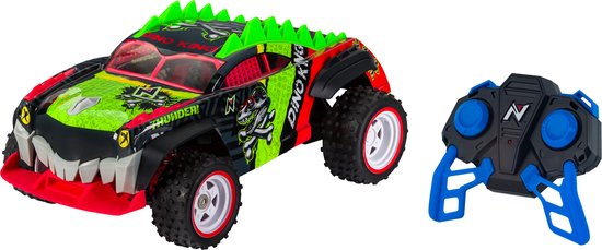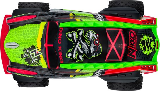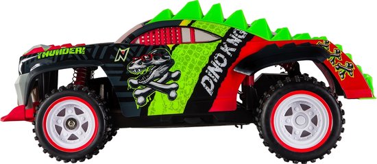 Maak kennis met de Nikko RC Dino Truck: Dino King – een spectaculaire bestuurbare auto voor binnen én buiten. Dit amfibievoertuig trotseert modder, zand, sneeuw en water dankzij zijn spatwater- en stofdichte chassis. Met een krachtige motor, robuuste ophanging en banden met extra grip is deze monstertruck klaar voor elk terrein. En dankzij de USB-oplaadbare accu en snelle laadtijd ben je in no-time weer klaar voor actie!