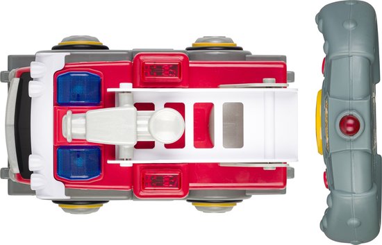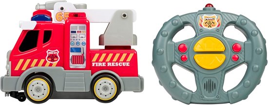 Deze RC brandweerauto uit de My First RC-serie is ideaal voor jonge kinderen vanaf 2 jaar. Het voertuig heeft een schaal van 1:20 en een lengte van ca. 19 cm, waardoor het perfect in kleine handen past. De afstandsbediening werkt op 2,4 GHz en biedt eenvoudige functies: vooruit en achteruit rijden. Tijdens het rijden hoor je grappige motorgeluiden en piepjes, die je met de mute-knop kunt uitschakelen. De speelgoedauto op afstandsbediening is rood gekleurd en heeft een kindvriendelijk brandweerdesign. Batterijen (5x AAA) voor zowel auto als controller zijn inbegrepen, zodat je direct kunt spelen. Dit radiografisch bestuurbare voertuig is robuust en geschikt voor binnen en buiten – een geweldig eerste RC voertuig voor peuters!
