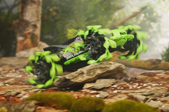 Verover ruige terreinen met de groeneNikko RC Rock Crusher met een bereik tot wel 100 meter! De automatisch uitschuivende wielen geven je de extra grip die je nodig gaat zijn om de hobbeligste terreinen te kunnen passeren. Ze klauwen zich letterlijk een weg in elk oppervlak en zien er niet alleen functioneel uit, maar ook nog eens heel cool! De bestuurbare auto kan een snelheid halen tot wel 14 km/h, afhankelijk van de ondergrond. Al met al, een geweldig cadeau voor kinderen vanaf 6 jaar.